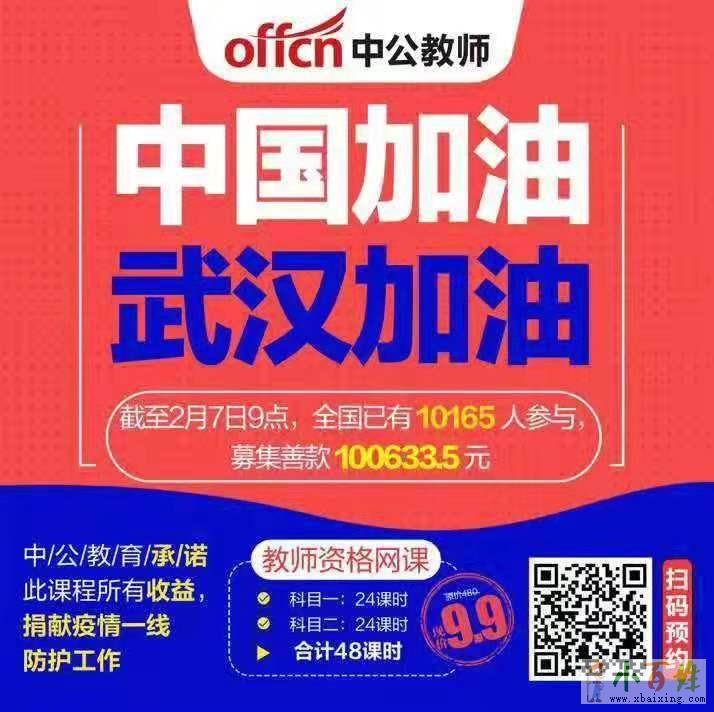 那就一起来备考教师资格证吧小+百+姓+网。听说现在中公教育的9.9元,教师资格证特别火爆,一方面有长达48课时的超级优秀的网课并且还有电子讲义欢迎www.xbaixing.com。另一方面这个还是公益活动 所有课程收入都是捐给武汉x b a i x i n g c o m。学习提高自己的同时又在为武汉加油小.百.姓.网。